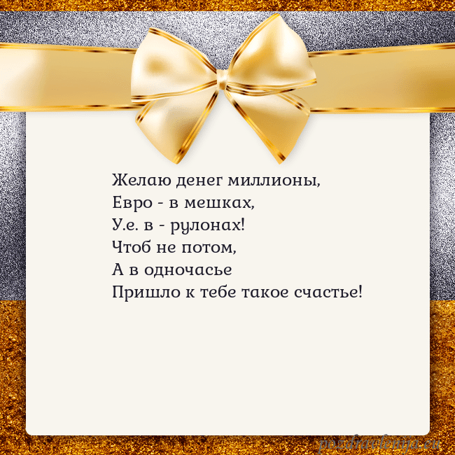 Желаю денег миллионы, Евро - в мешках, У.е. в - рулонах!