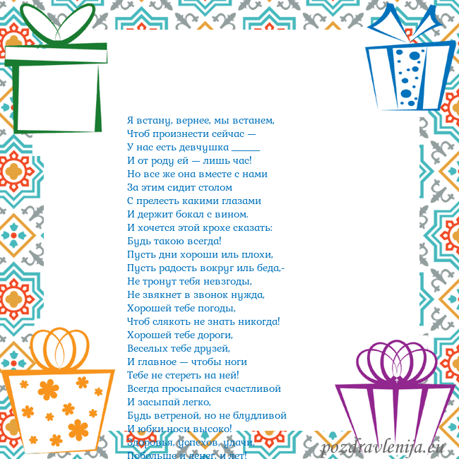 Прекрасно, когда для виновника торжества гости подбирают душевные и лично ему адресованные поздравления. В наш век технологий всё чаще близкие и друзья поздравления с днем рождения отправляют SMS-сообщением, по электронной почте или пожеланием в социальных сетях. Те бумажные открытки, которые еще совсем недавно мы отправляли по почте, все чаще заменяют открытки, высылаемые по почте электронной. Выбор открытки или поздравления ко дню рождения зависит от именинника, его возраста, увлечений, мечты.Для молодежи, детей, очень близких приятелей подходят смешные, юмористические поздравления, для более солидных, зрелых юбилеев поздравления подбираются более серьезные, с глубоким смыслом. В зависимости от случая может быть достаточно короткого поздравительного текста с искренним пожеланием, предназначенным для конкретного человека, иногда более подходящим бывает стихотворное поздравление. Поздравительные тексты, которые предназначаются для любимого человека, могут быть сексуальными, с эротическими намёками.Для поздравления детей подходят веселые четверостишия. Взрослые дети, поздравляя своих мам, чаще всего благодарят их за то, что мама их вырастила, заботилась о них, желают маме, чтобы та нашла время для отдыха и для себя. В основном, чем ближе человек, которого поздравляем, тем более личным бывает поздравление. В текстах поздравлений по случаю юбилеев часто упоминается количество прожитых именинником лет, делается акцент на достижениях юбиляра.Наверное, не зря существует поверье, что сказанные на дне рождения искренние, индивидуальные пожелания сбываются. Поэтому пожелание, предназначенное для коллеги, скорей всего не подойдет для поздравления мамы, отца или бабушки, а поздравляя друга или ребенка, мы скорей всего подберем совершенно другие слова, нежели для поздравления любимого.