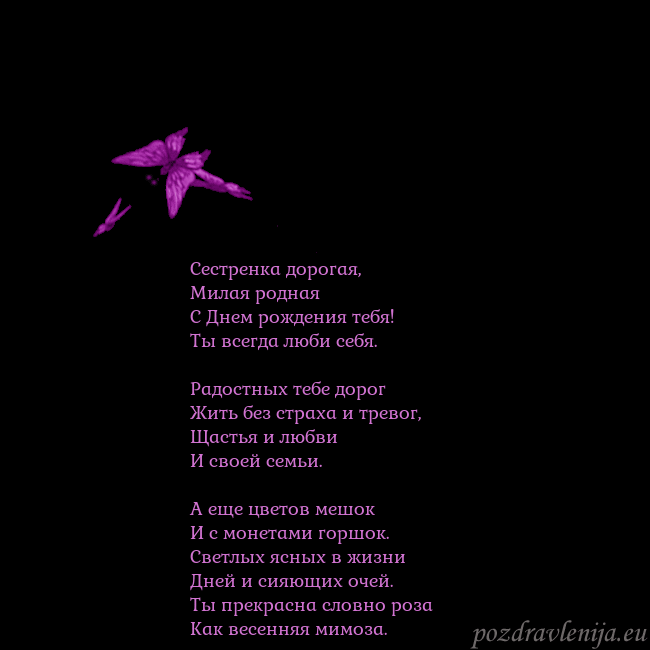 Сестренка дорогая, Милая родная С Днем рождения тебя! Ты