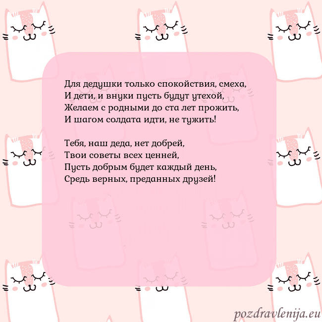 Для дедушки только спокойствия, смеха, И дети, и внуки пусть