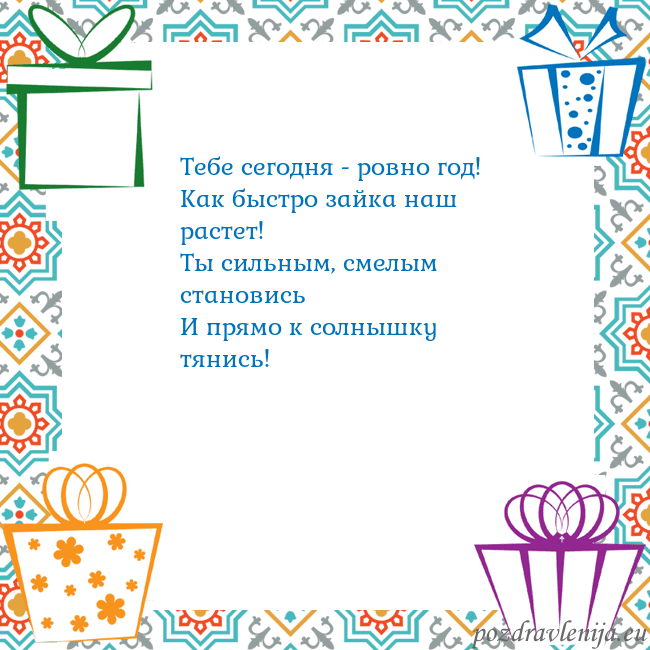 Тебе сегодня - ровно год! Как быстро зайка наш растет! Ты
