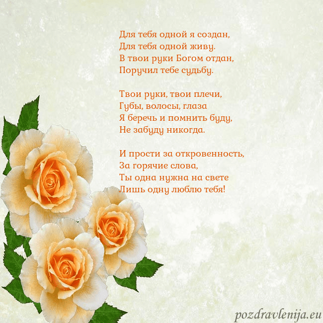 Для тебя одной я создан, Для тебя одной живу. В твои руки