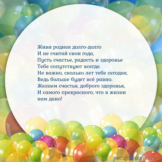 Живи родная долго-долго И не считай свои года, Пусть счастье