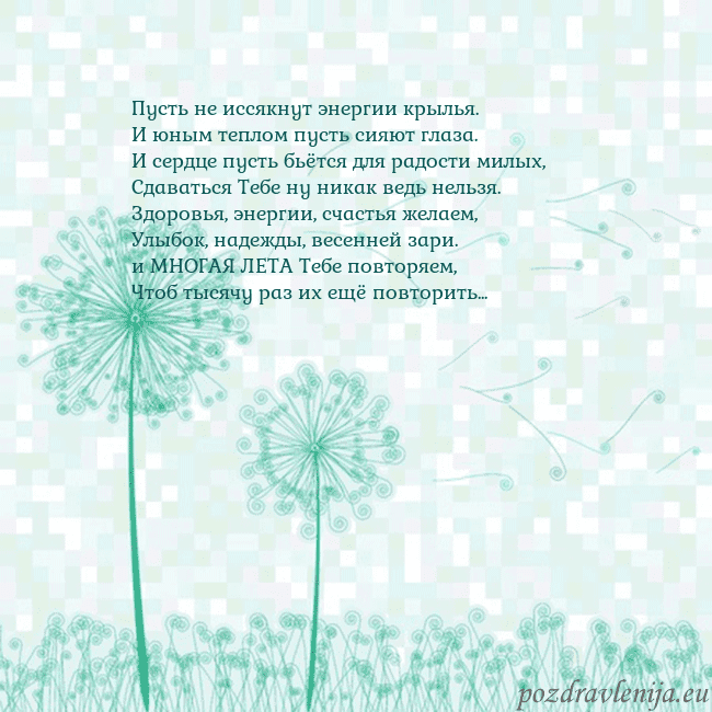 Пусть не иссякнут энергии крылья. И юным теплом пусть сияют