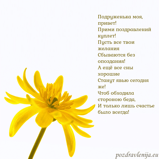 Подруженька моя, привет! Прими поздравлений куплет! Пусть